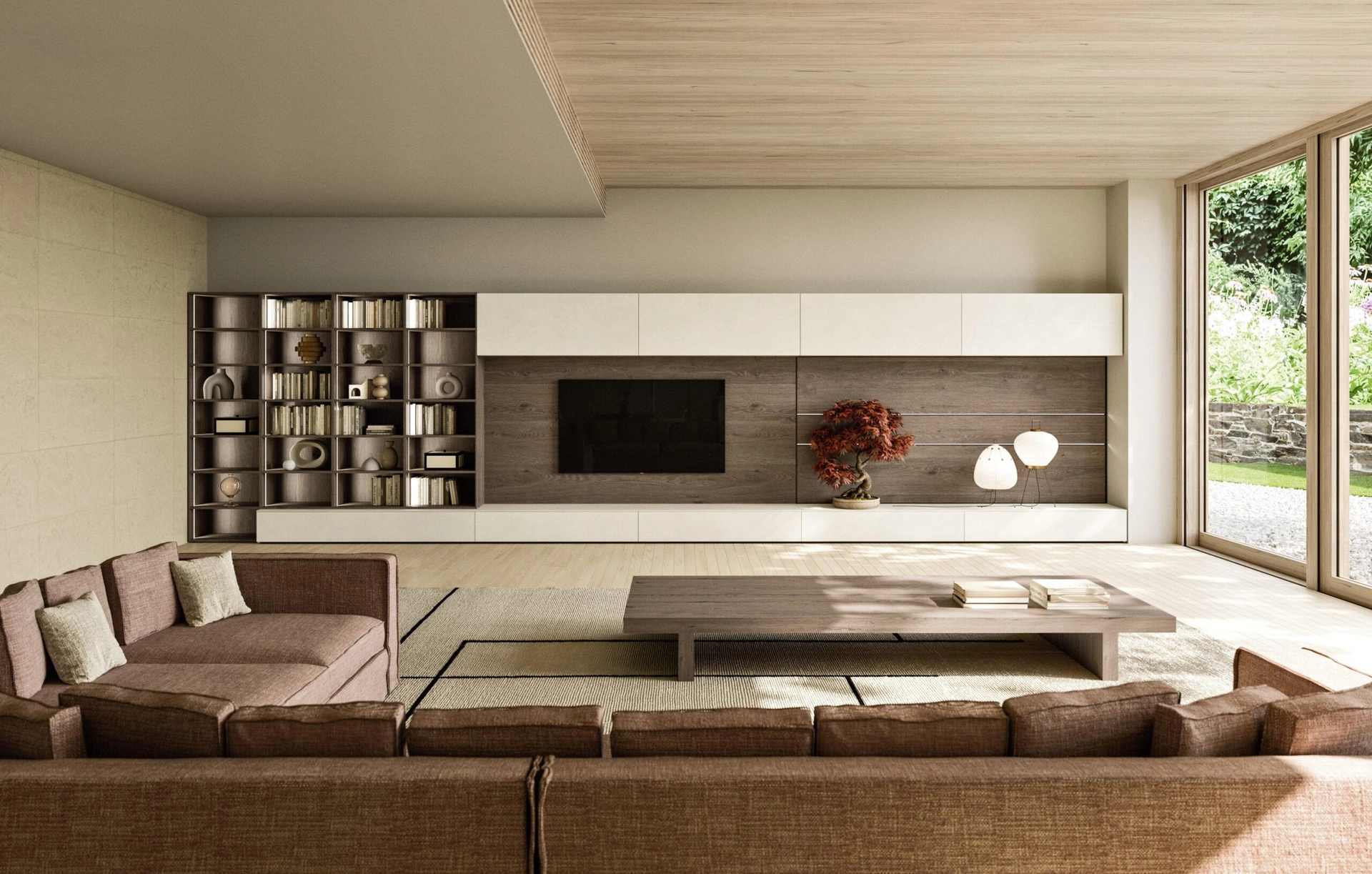 Vuoi progettare un soggiorno dinamico e operativo? Ti presentiamo la parete attrezzata Modula Composizione 02 Snaidero dalle forme decise moderne.