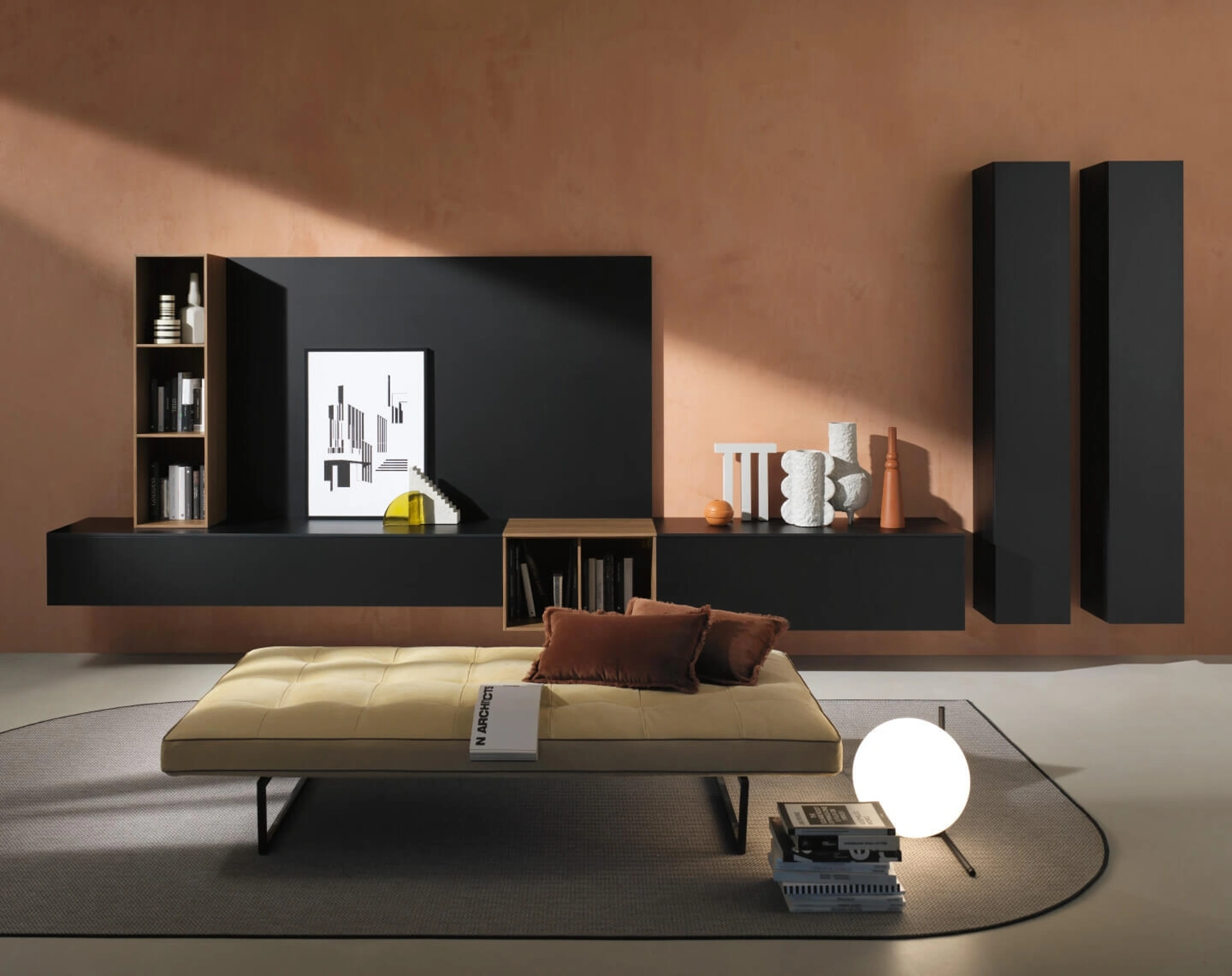 Se vuoi ultimare un soggiorno dinamico e operativo dalle linee moderne, ti offriamo la parete attrezzata SpaceMakers day SM2203 Zalf.