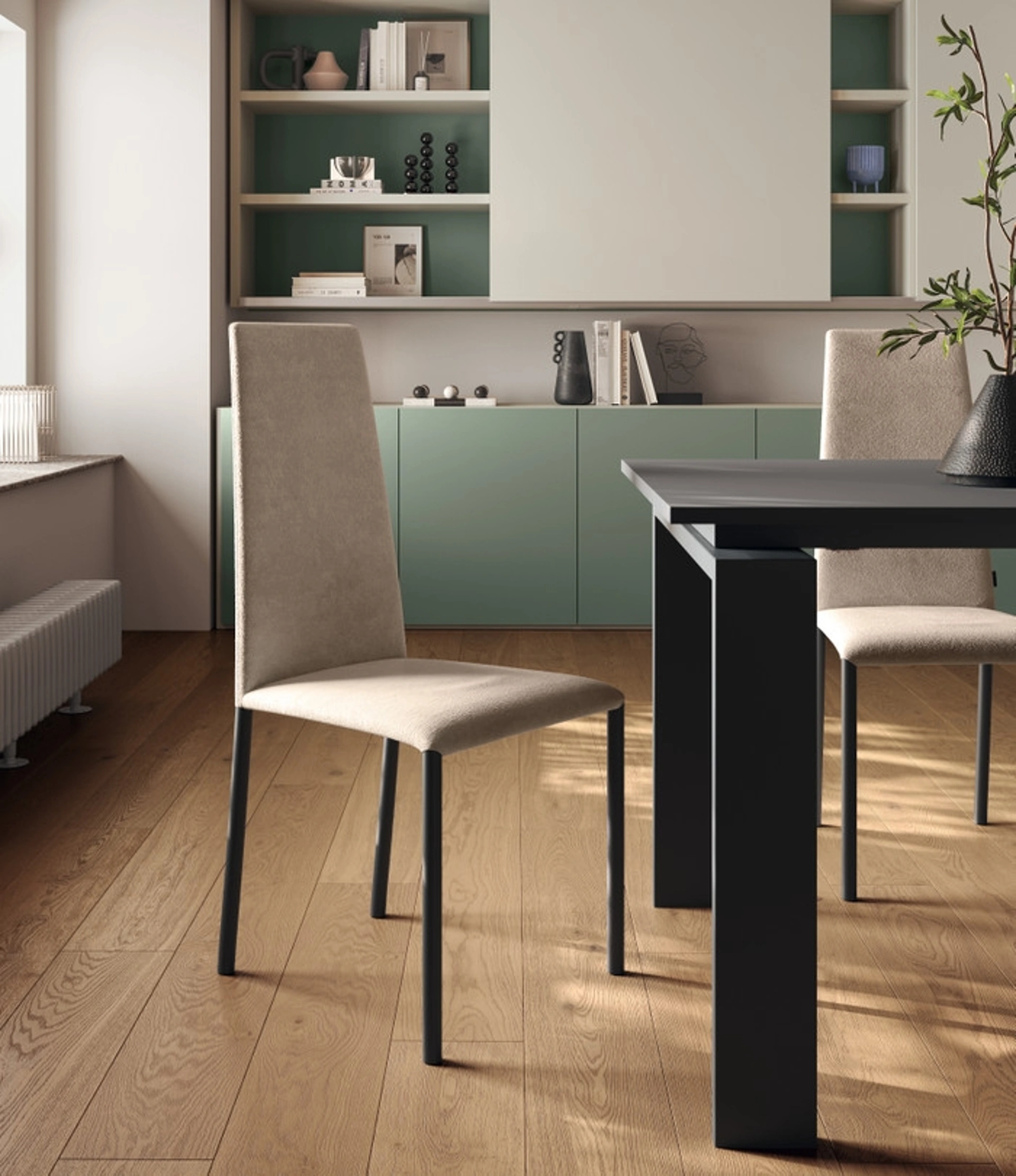Cerchi una sedia da pranzo in tessuto? Clicca e scopri il modello Liam di Scavolini per completare i tuoi spazi perfettamente.